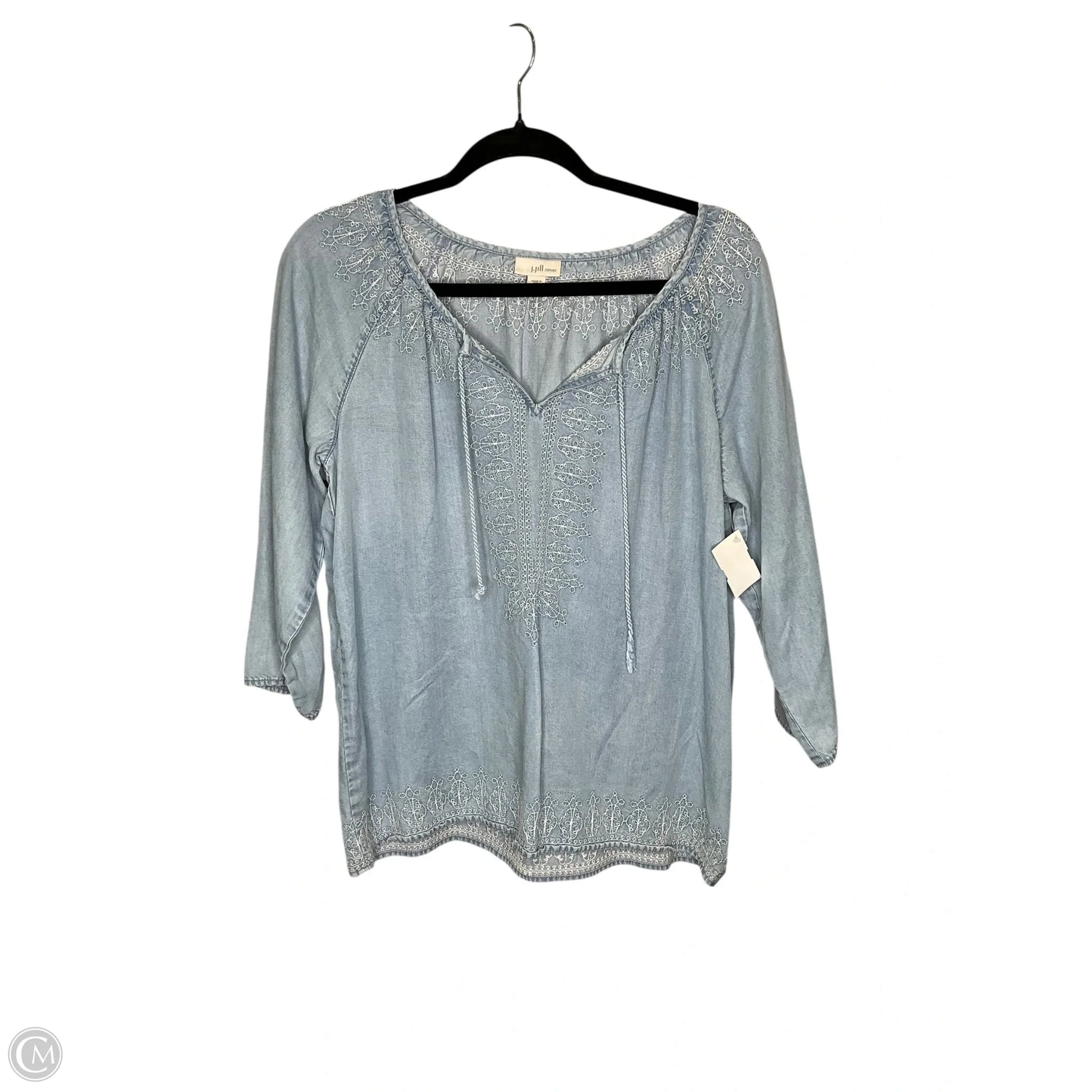 Top 3/4 Sleeve By Croft And Barrow In Blue & White, Size: M